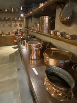 Als amateur-bakker maak ik hier een klein vreugdedansje. Wat een collectie! Koperen potten die glanzen alsof ze net gepoetst zijn, koperen pannen waar je een leger mee kunt voeden, en een schat aan bakvormen in alle maten en soorten. Terwijl anderen misschien gewoon doorlopen, blijf ik hangen en staar ik alsof ik in een patisserie-museum terecht ben gekomen. Ik voel bijna de geur van versgebakken brood en cake de ruimte vullen.