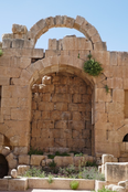 Nymphaeum: één van de meest geliefde ruïnes van Jerash, deze sierfontein in Romeinse stijl is uitgehouwen om op zeven leeuwenkoppen te lijken. Dit goed bewaard gebleven exemplaar was oorspronkelijk verfraaid met marmeren bekledingen op het lagere niveau en geschilderd gips op het bovenste niveau, bekroond met een half koepeldak
